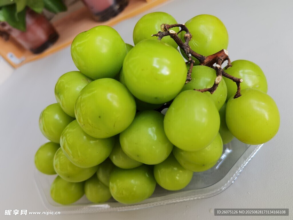 新鲜青葡萄摆放在盘中图片