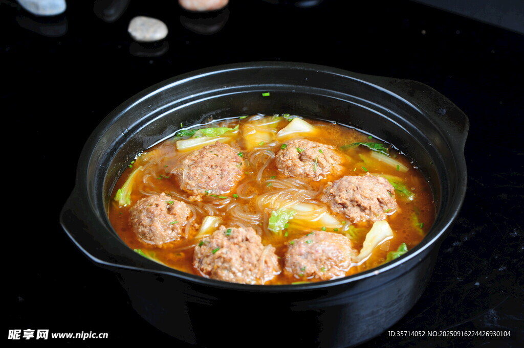 锅中炖煮的美味肉丸汤图片