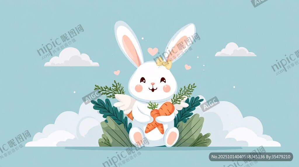 可爱白兔抱胡萝卜在云端图片