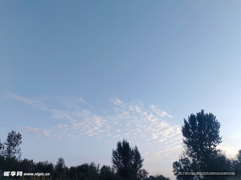 黄昏下的树木与天空图片
