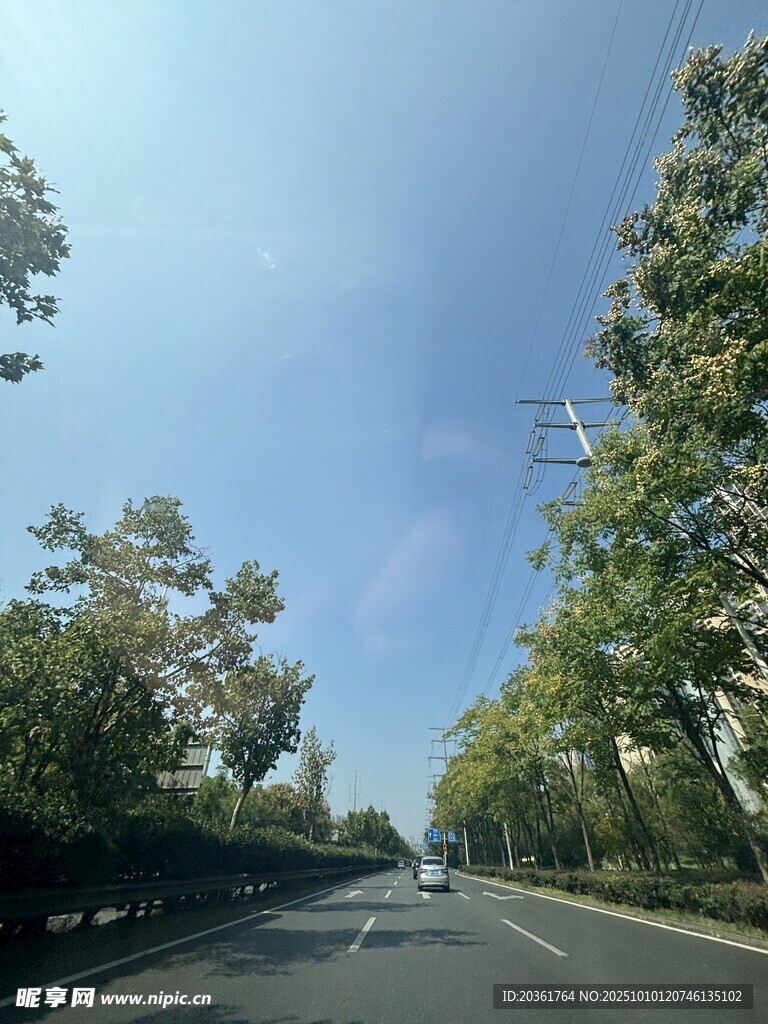 宽阔公路旁绿树成荫图片