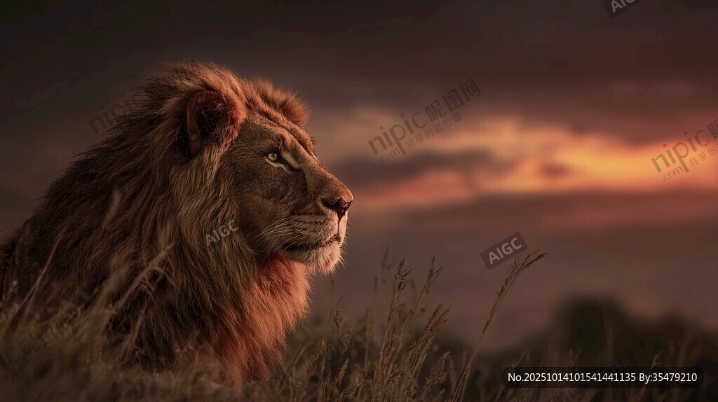 黄昏下的雄狮图片