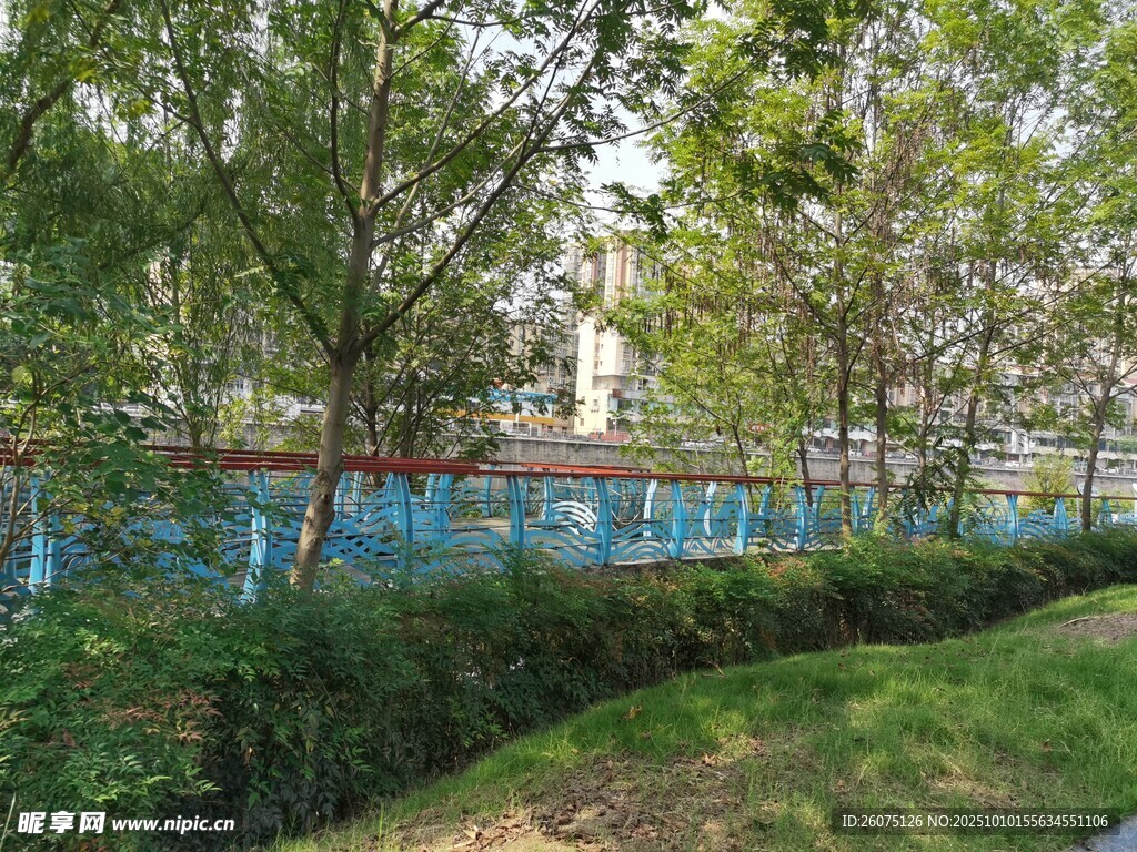 户外绿树环绕的静谧景致图片