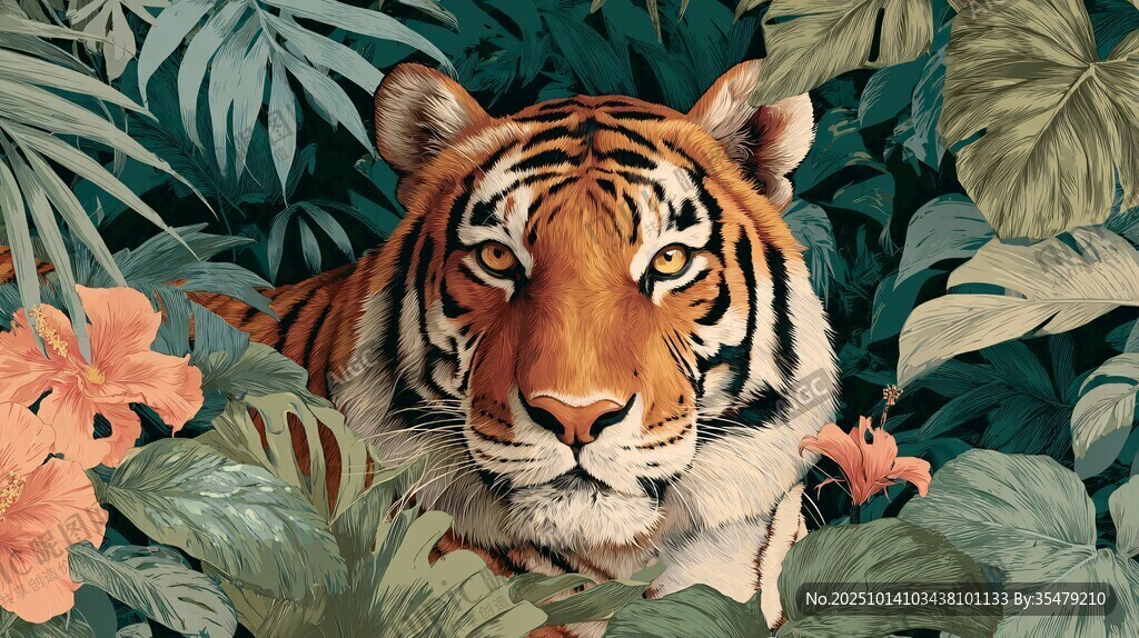 丛林中的老虎与繁茂植物图片