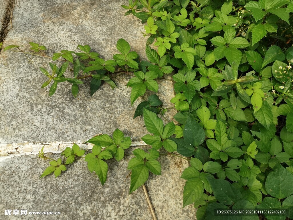石缝中生长的翠绿植物图片