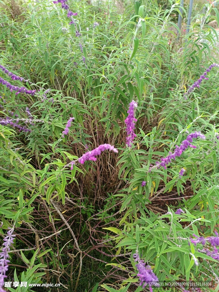 紫色花丛中的繁茂植物图片