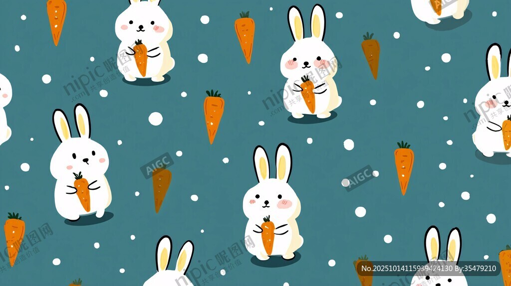 可爱兔子与胡萝卜图案背景图片