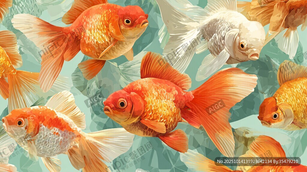 多彩金鱼畅游于梦幻水底图片