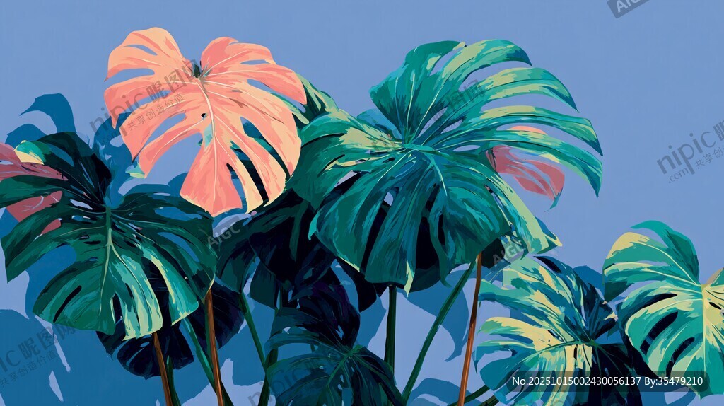 梦幻龟背竹 清新植物景致图片