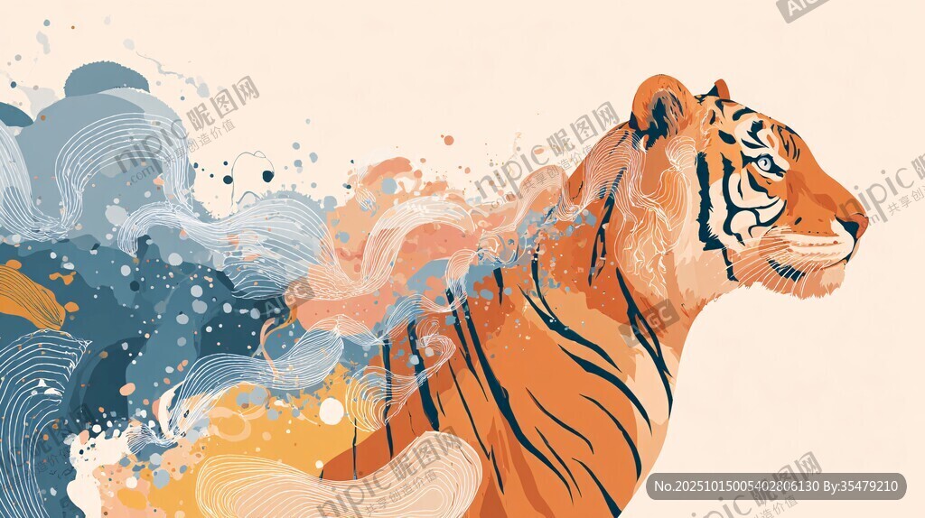 水墨风老虎 灵动艺术形象图片
