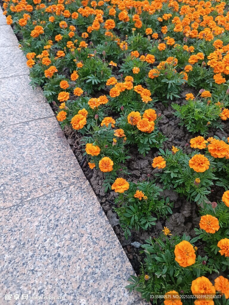 路边盛放的橙色小花图片