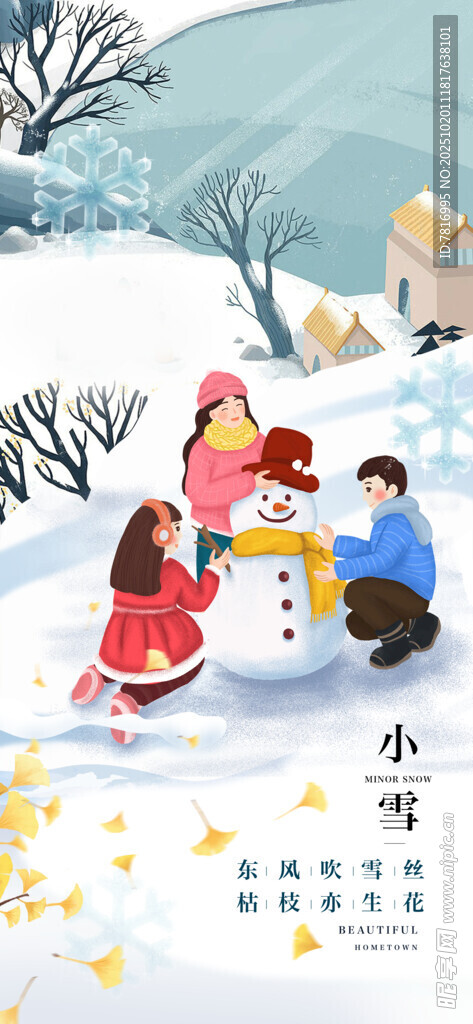 冬日孩童雪地欢乐堆雪人图片