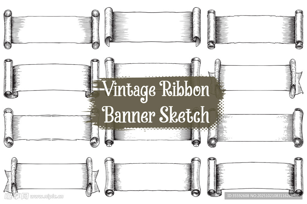 复古丝带卷轴图片
