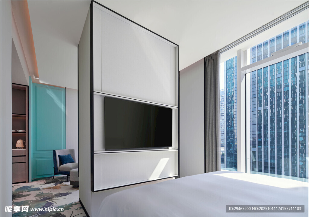 现代简约风卧室大窗景观图片
