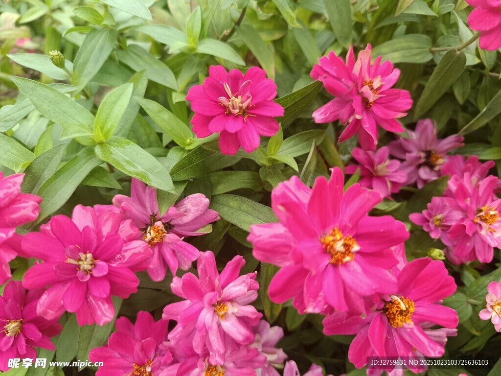 娇艳粉色花朵绽放绿叶间图片