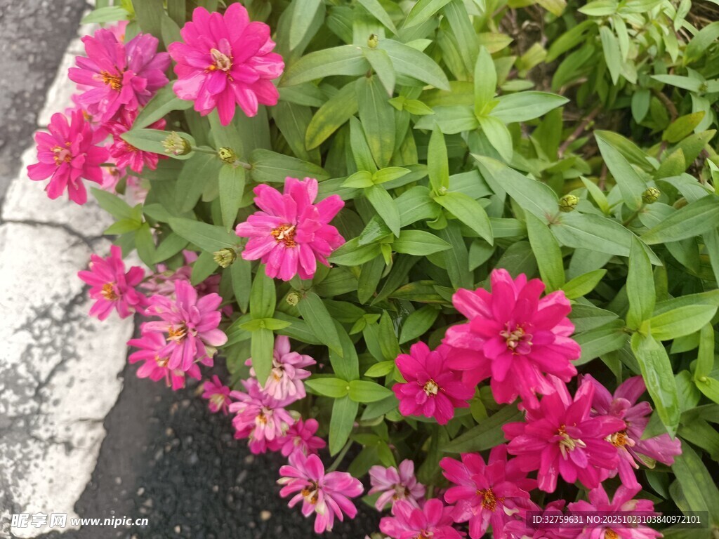 路边绽放的鲜艳粉色花朵图片