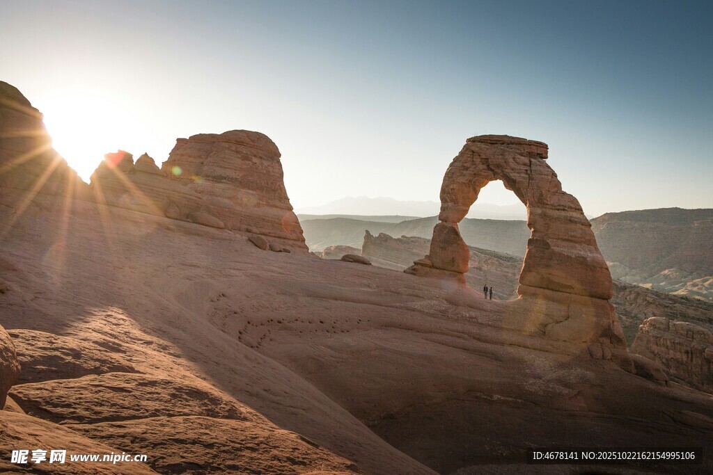 日出下的沙漠拱门景观图片