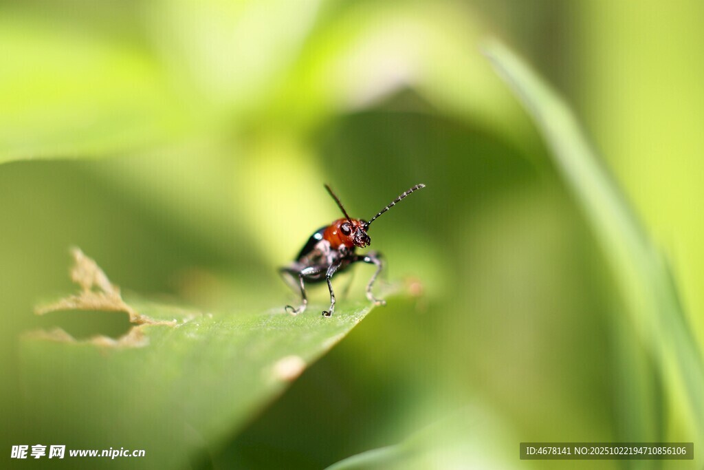 绿叶上的多彩小昆虫图片