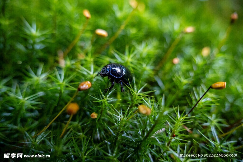 草丛中的黑色甲虫图片
